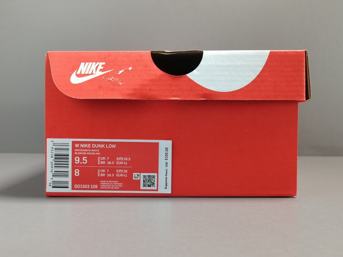 Featuring the iconic Nike Swoosh logo on the sides, the Nike Dunk x Triple White sneakers showcase a timeless and recognizable design. The all-white colorway offers a versatile and clean look that pairs well with any outfit.
