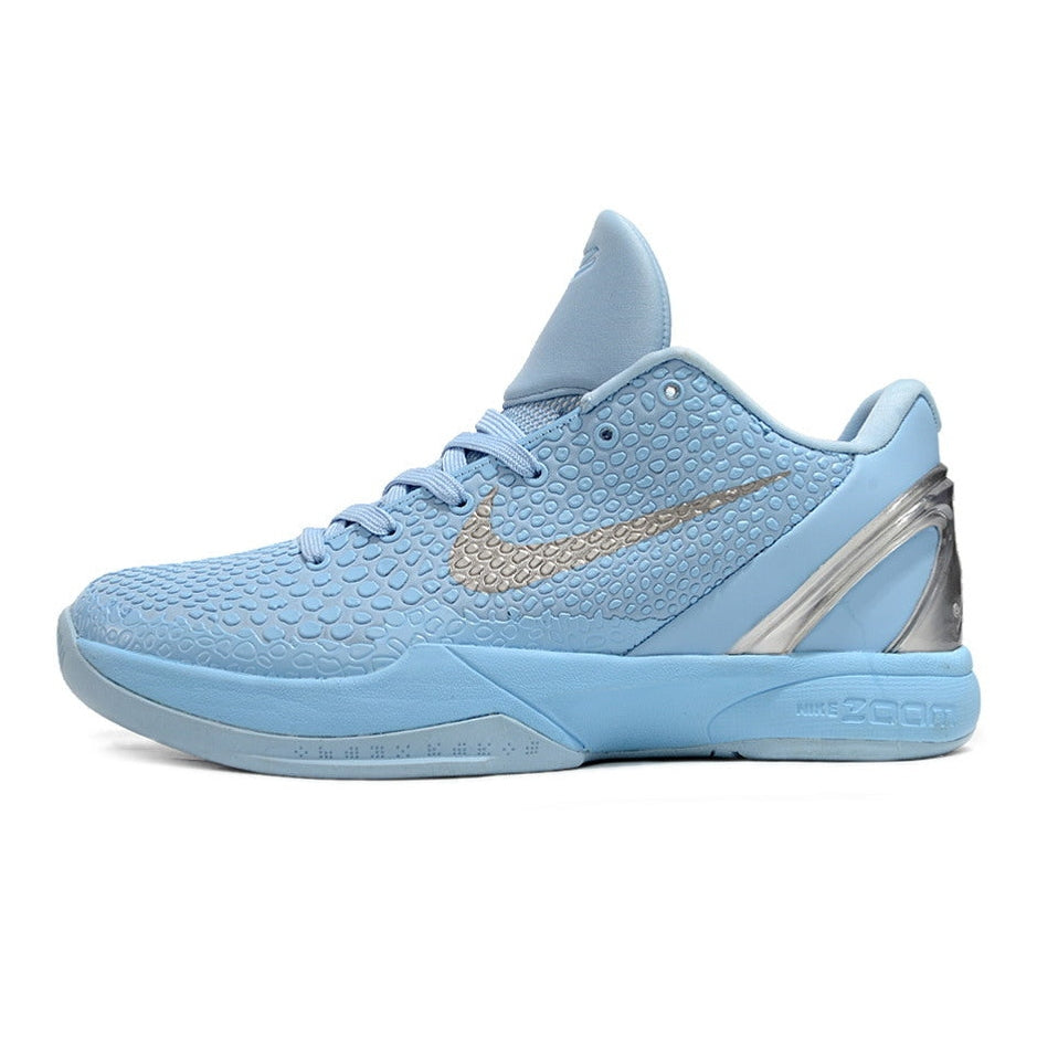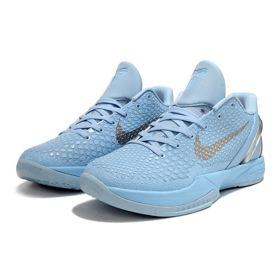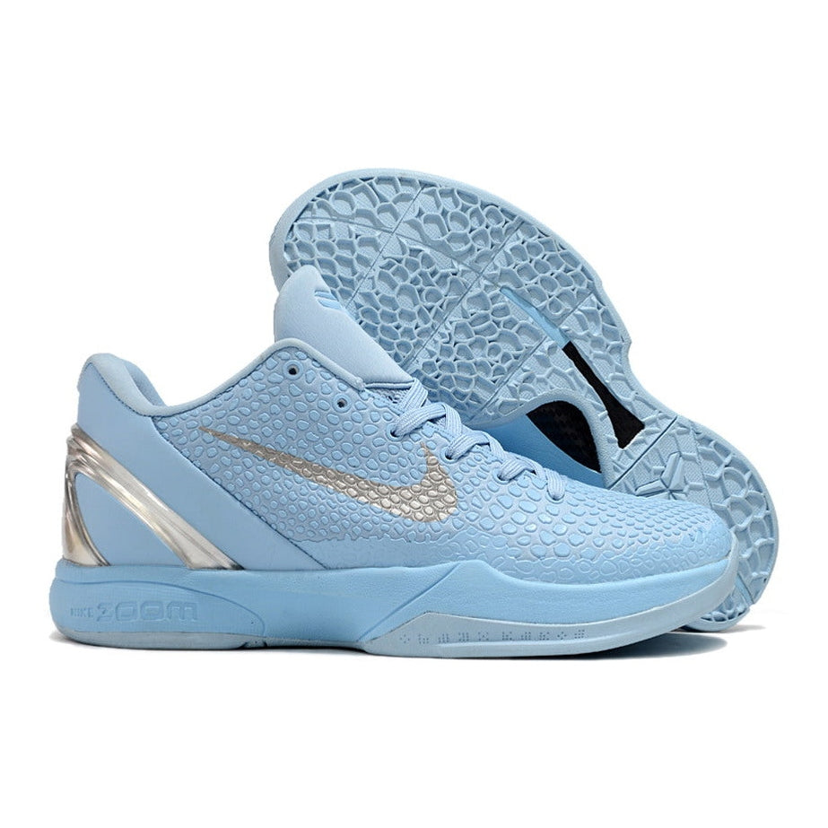 The Nike Kobe 6 Protro x Ice Grinch brings a frosty twist to one of Kobe Bryant’s most iconic sneaker designs. Inspired by the original "Grinch" colorway, this edition features cool, icy blue tones with subtle green accents, offering a fresh take on the classic. Engineered for top-tier performance, the lightweight upper ensures speed and agility, while responsive Zoom Air cushioning delivers unmatched comfort and explosive energy return. The durable traction provides reliable grip for quick cuts and fast breaks. The Kobe 6 Protro x Ice Grinch is a perfect blend of bold style and performance, making it a must-have for sneakerheads and athletes alike.