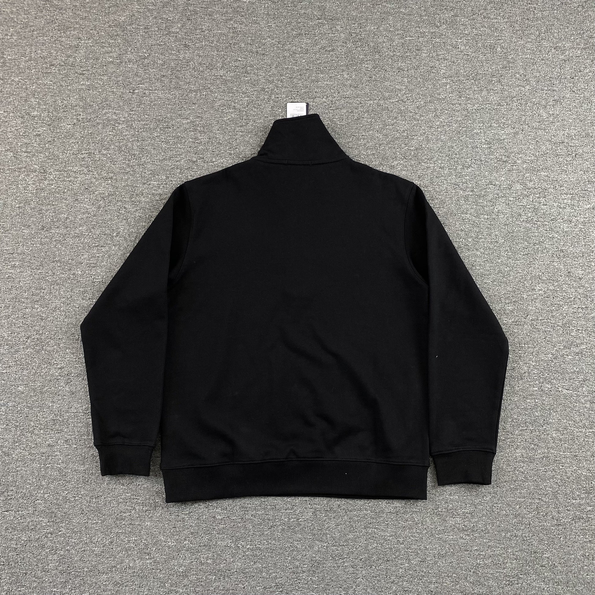 Designed in a sleek black colorway, it features the signature Polo Ralph Lauren embroidered pony logo on the chest, adding a touch of understated elegance. The quarter-zip closure and ribbed cuffs provide an adjustable, comfortable fit, making it perfect for both laid-back styling and elevated layering.