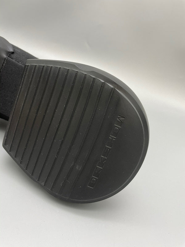 **Design and Aesthetics:** These high-top boots feature an all-black upper crafted from premium canvas material, giving them a sleek and modern look. The standout feature of these boots is the exaggerated black platform sole, which not only adds height but also a dramatic and futuristic aesthetic. The minimalist design, combined with the unique silhouette, makes these boots a distinctive addition to any wardrobe.