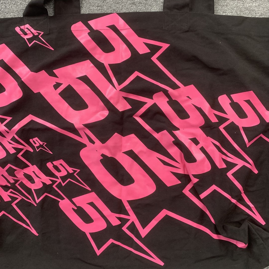 Featuring SP5DER’s signature branding and web-inspired graphics, the sleek black colorway keeps it versatile while adding an edgy, statement-making appeal. Designed with reinforced handles and a spacious main compartment, this bag delivers both practicality and streetwear flair.